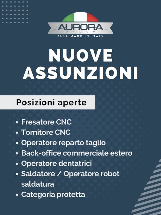 👉 Se ti interessa entrare a far parte della nostra realtà, scopri i ruoli disponibili e inviaci la tua candidatura: https://aurora-group.it/jobs.asp