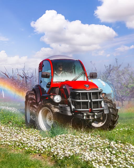 🌳Cofano e cabina ribassati, pensati per filari fitti, sottochioma e passaggi difficili.